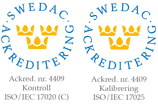 För mer detaljerad information om ackrediteringens omfattning och ackrediteringsområde, klicka på någon av ackrediteringsloggorna för att komma vidare.